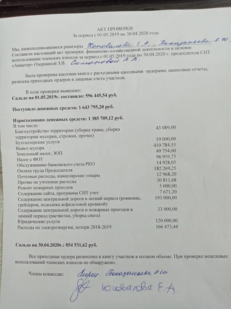 Доклад председателя по итогам общего собрания СНТ "Авиатор" от 19.07.2020